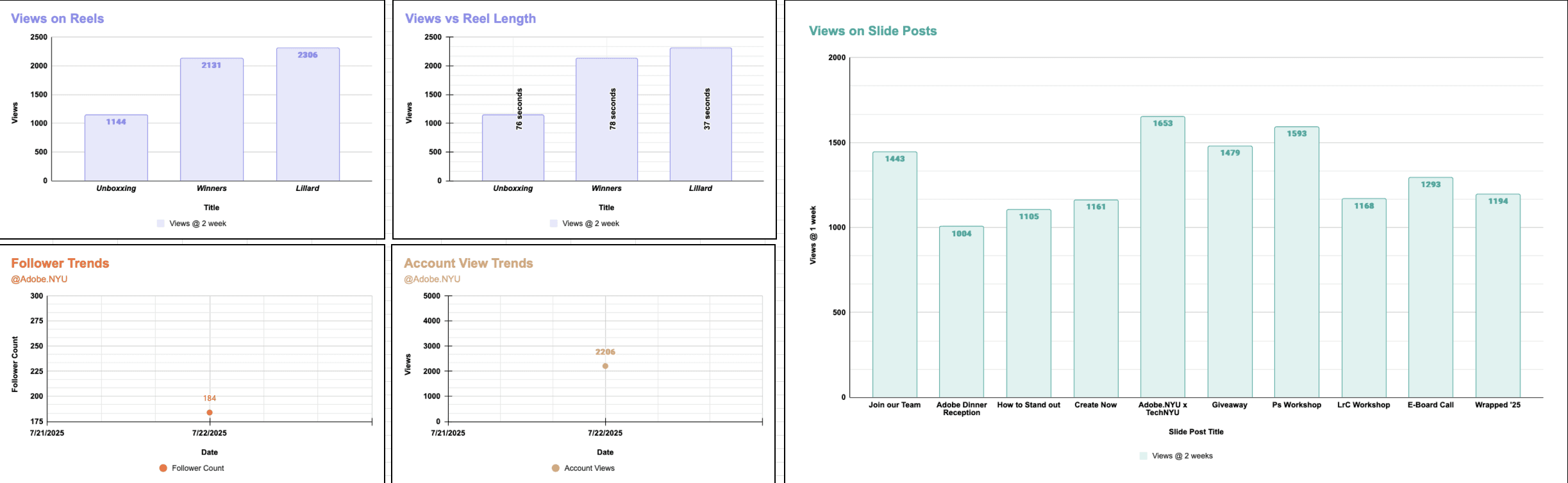 Analyzed reel performance to optimize content length and storytelling, resulting in +2,200 account views in a single campaign week.